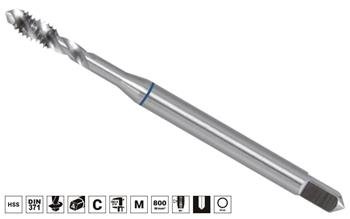 Strojní závitník z vysoce odolné rychlořezné oceli pro průchozí závity a závity do dna (slepé díry), kde je závit vyříznut v jedné operaci. Možno použít do materiálů z nelegovaných ocelí do pevnosti 800 N/mm2, kujné.