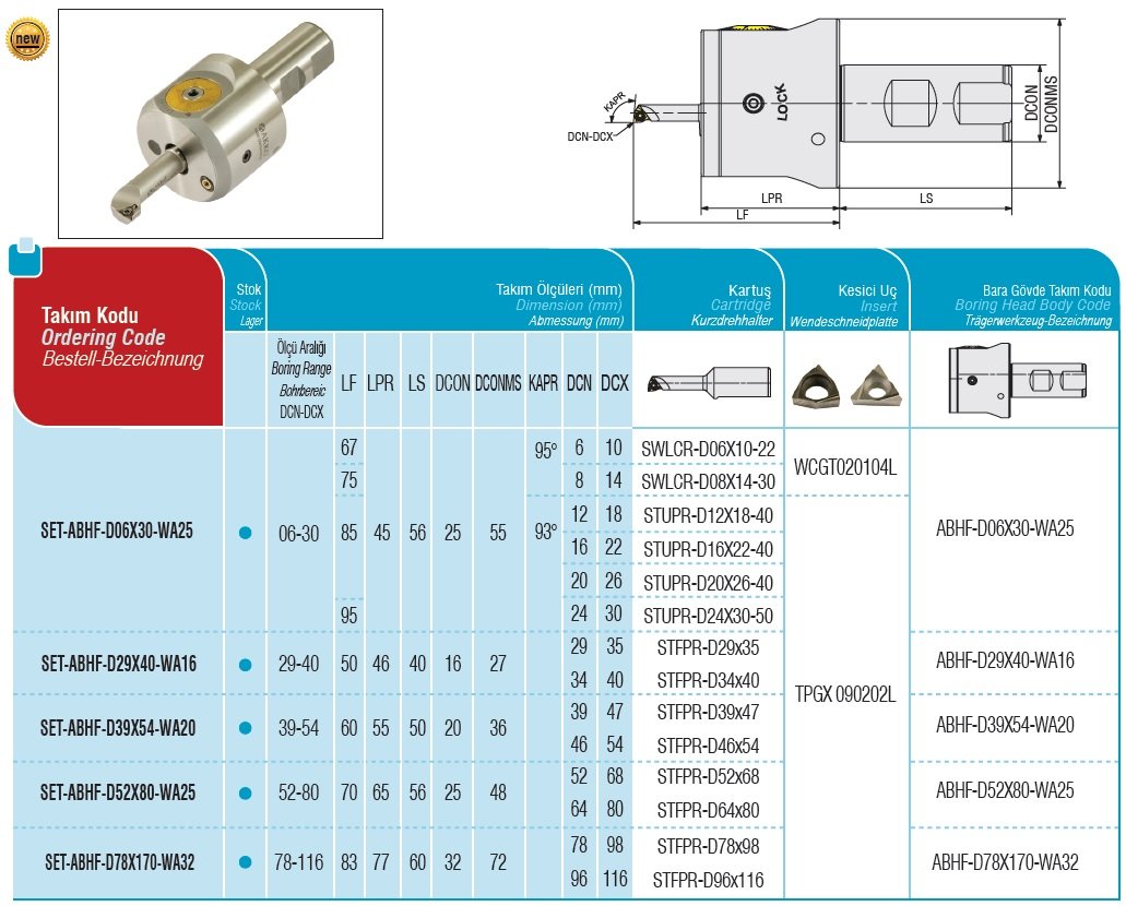 Přesné dokončovací sety vyvrtávacích hlav AKKO ABHF jsou oblíbeným řešením pro aplikace finílního obrábění vnitřních otvorů s možností nastavení obráběného průměru. Více informací o produktu viz. přiložený katalogový list PDF. Více