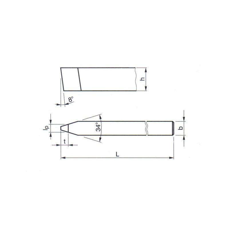h: 20 mm. b: 12 mm. L: 125 mm. t: 9 mm. Ip: 8,5 mm.