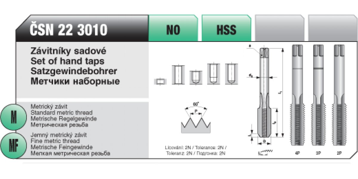 VÝPRODEJ - Závitníky sadové M 2,5 x 0,45 / HSS / ČSN 22 3010