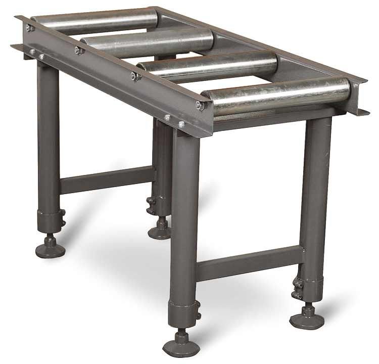 Válečková trať pro podávání rozměrných a těžkých materiálů při řezání. Stabilní konstrukceVýškově přestavitelnáOcelové podávací válečky běžící v kuličkových ložiscích