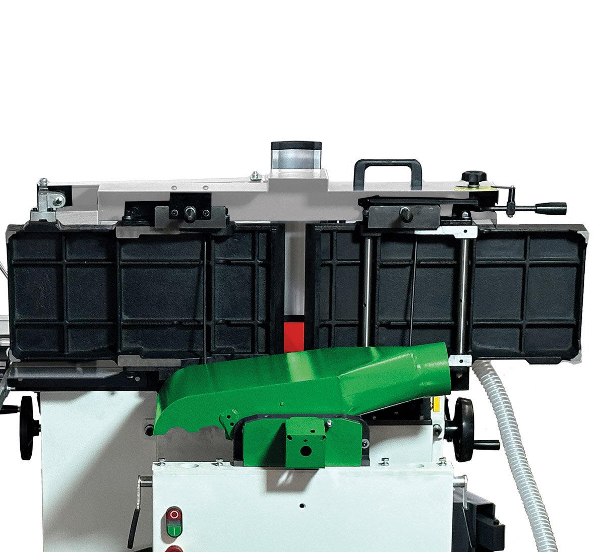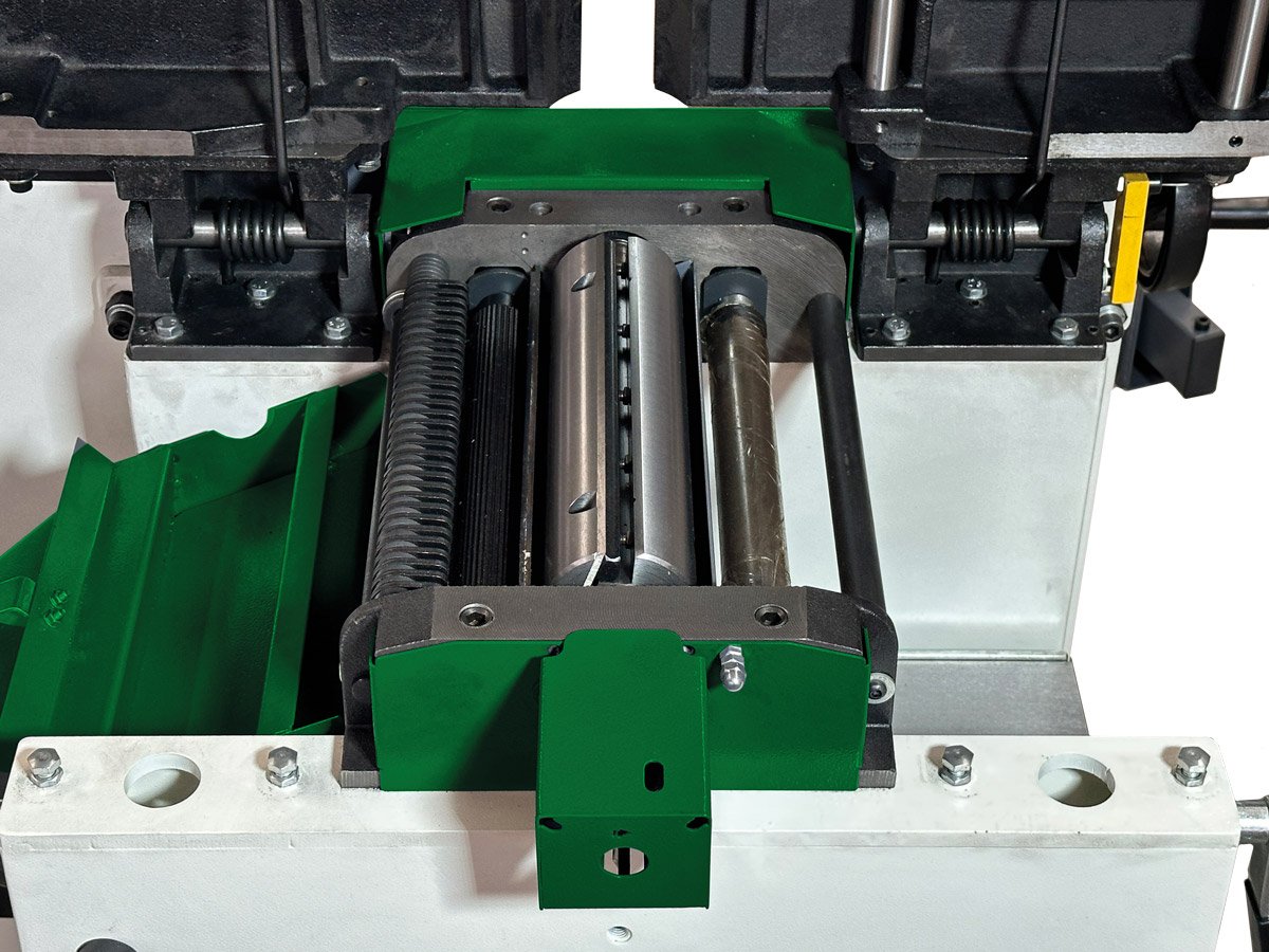 - Pogumovaný výstupní válec chrání povrch obrobku při hoblování