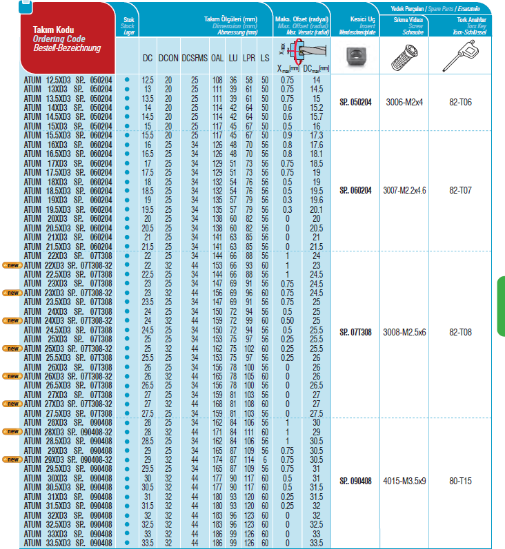 Vrtáky ATUM v rozsahu průměru 15,5 - 21,5mm. Vrtáky jsou kompatibilní s výměnnými břitovými destičkami SP.. 060204. Více