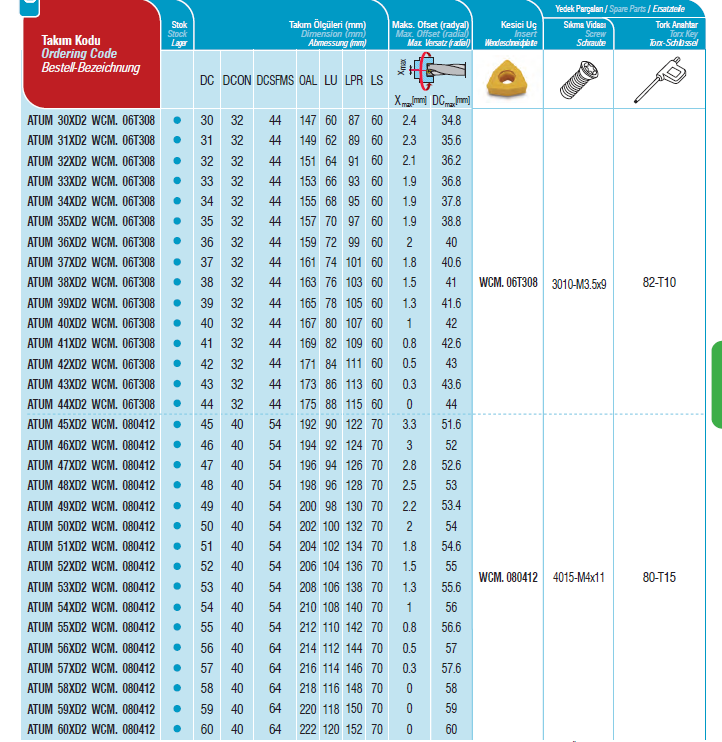 Vrtáky ATUM v rozsahu průměru 16 - 19,5mm. Vrtáky jsou kompatibilní s výměnnými břitovými destičkami WCM. 030208 Více