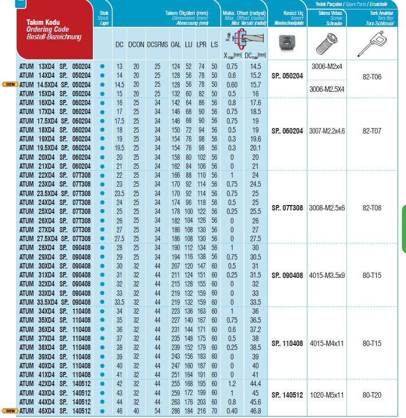 Vrtáky ATUM v rozsahu průměru 16 - 21mm. Vrtáky jsou kompatibilní s výměnnými břitovými destičkami SP.. 060204. Více