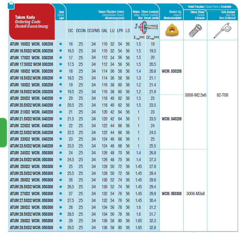 Vrtáky ATUM v rozsahu průměru 20 - 23,5mm. Vrtáky jsou kompatibilní s výměnnými břitovými destičkami WCM. 040208 Více