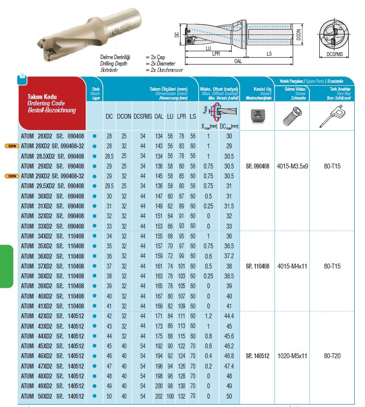 Vrtáky ATUM v rozsahu průměru 42 - 50mm. Vrtáky jsou kompatibilní s výměnnými břitovými destičkami SP.. 140512. Více