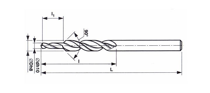 Vrták stupňovitý s válcovou stopkou na díry pro dřík a hlavu šroubu, 90°, HSS 221254 7,8x4,3 mm, M4-90°