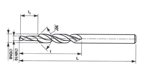Vrták stupňovitý s válcovou stopkou na díry pro dřík a hlavu šroubu, 90°, HSS 221258 9x6,8 mm, M8-90°