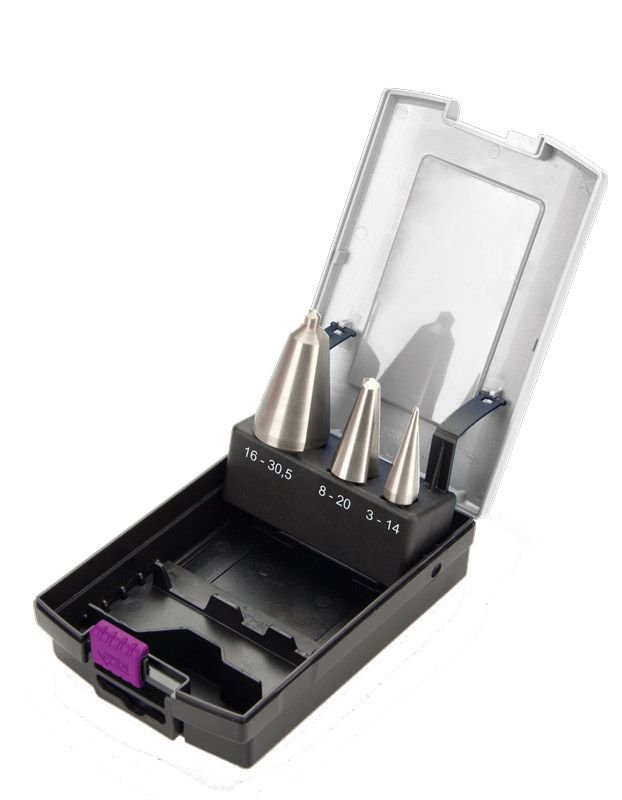 Sada kuželových vrtáků do plechu 3 – 14 mm / 8 – 20 mm / 16 – 30,5 mm.