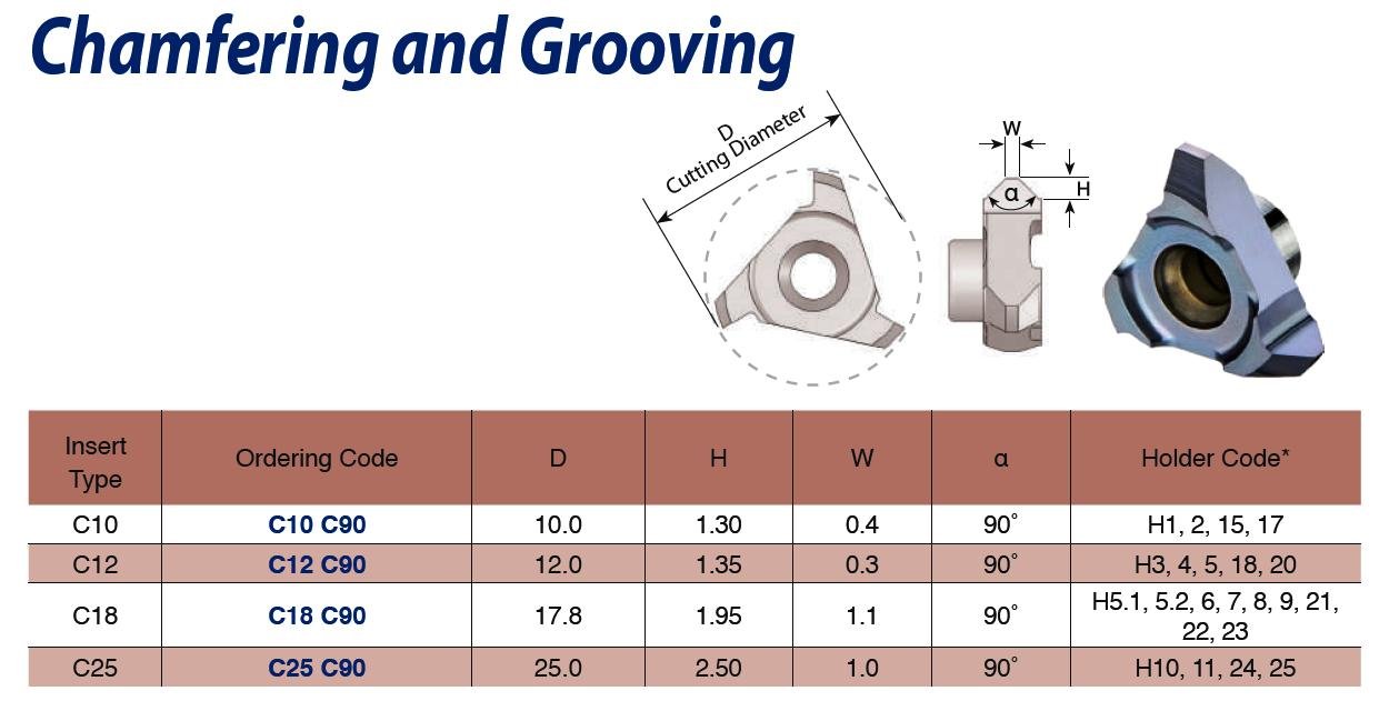 Výměnná tvrdokovová hlavice C25C90 25x2,5 / 90° pro drážkování a srážení hran