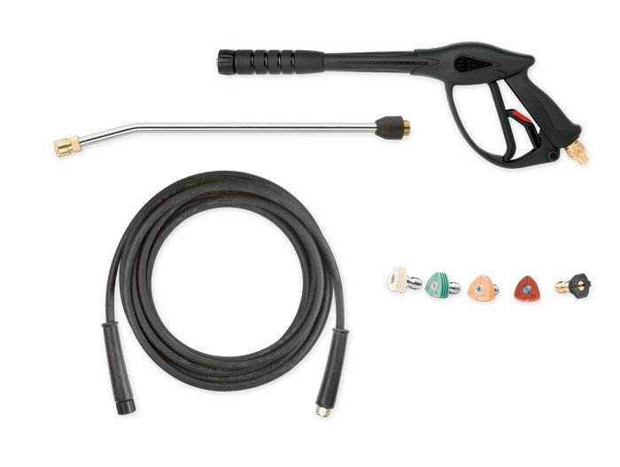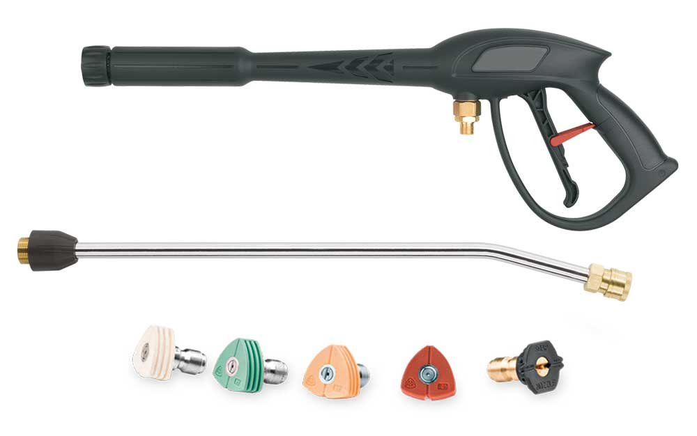 - Praktické držáky pro stříkací pistoli, trubici, vysokotlakou hadici a napájecí kabel