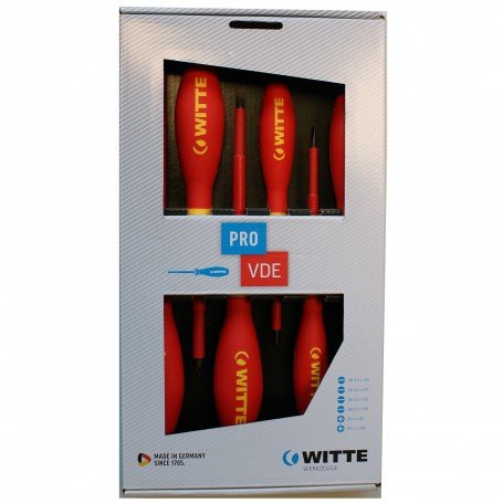 Witte Sada šroubováků VDE, 6-ti dílná. Složení PH a ploché šroubováky. sada obsahuje: 1x PH1 1X PH 2 pl 3x100 mm pl 4x100 mm pl 5,5x125 mm pl 6,5x150 mm