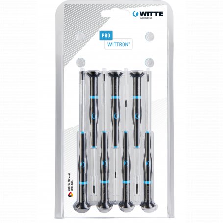 Sada šroubováků WITTRON 7-ti dílná v plastovém obalu sada obsahuje: 2.5 3.0 3.2 3.5 4.0 5.0 5.5 Šroubováky WITTRON značky WITTE lze požít při práci v jemné mechanice a elektronice. Rozsáhlé výzkumy vedly k nezaměnitelné geometrii ergonomické rukojeti WITTRON. Více