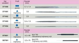 Sada s 5 diamantovými pilníky a 2 trojhrannými noži.