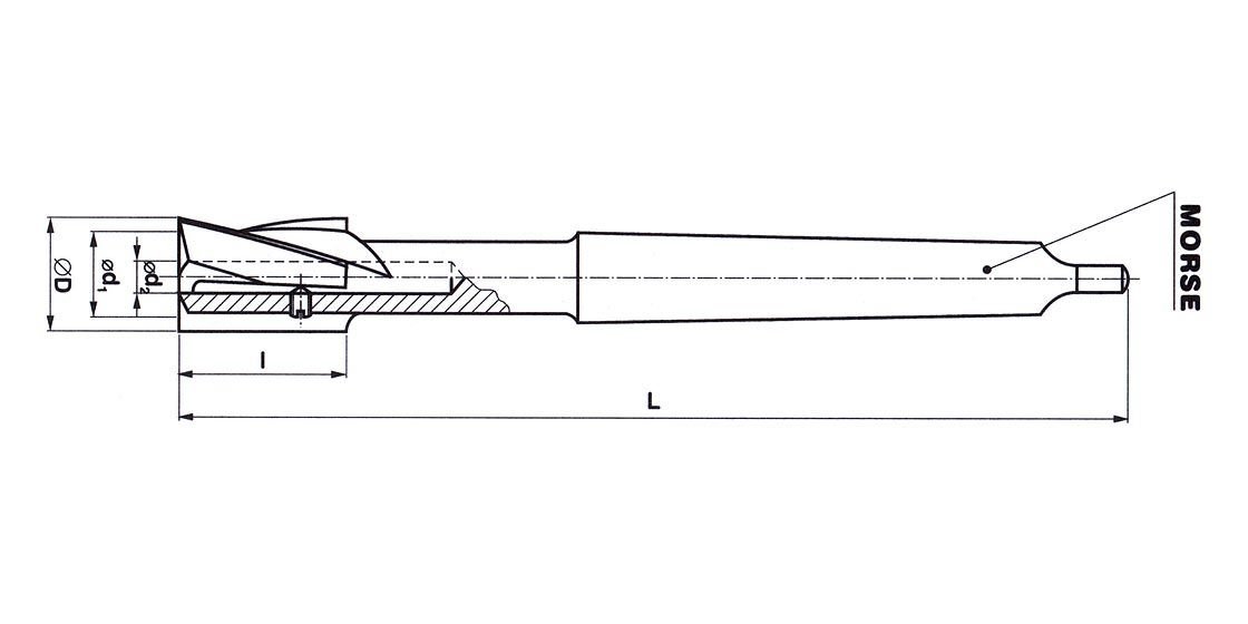 Záhlubník je vyroben z výkonné rychlořezné oceli HSS. Provedení čtyřbřité se zuby v pravé šroubovici.