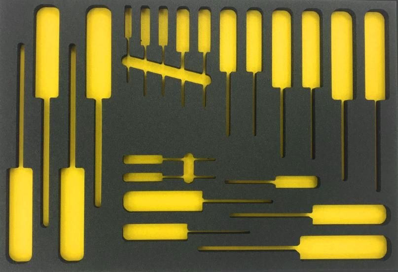 Našim zákazníkům nabízíme zakázkovou výrobu pěnových výplní z kvalitních materiálů. Pěnové výpně jsou vyráběny zejména pro účely bezpečné přepravy zboží a komfortního skladování měřidel či nástrojů. Pro naše zákazníky vytváříme sady měřidel, nástrojů a nářadí dle požadavku. … Více