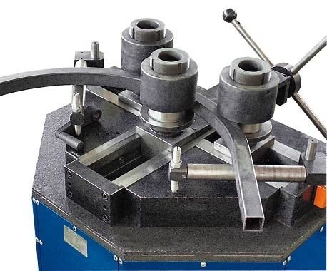 Zakružovačka profilů s proměnlivou roztečí kladek - vynikající univerzálnost a široké možnosti použití. Posunutím samostatně přestavitelných bočních kladek se zvyšují možnosti.