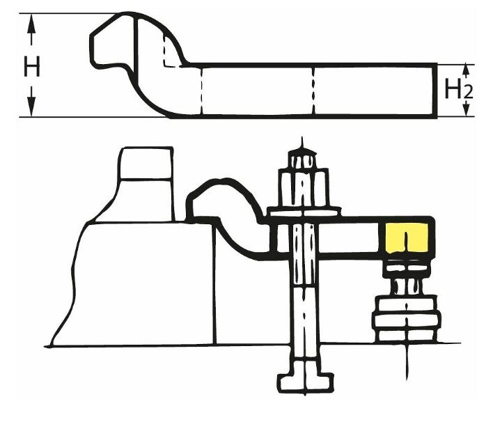 Zalomená upínka vyrobená ze zušlechtěné oceli s lakovaným povrchem. Technická specifikace: Norma: DIN6316 B1: 26 L: 200 Pro upínací šroub: M24 A: 35 B2: 70 B3: 35 C: 25 E1: 72 E2: 60 H: 32 Váha: 3315g … Více