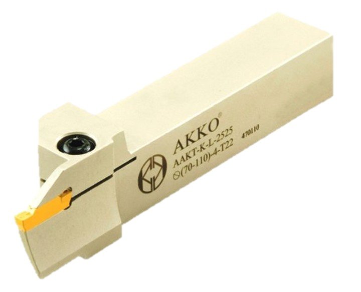 Tělo nástroje je vyrobeno z kvalitní oceli. VBD je upevněna standardním způsobem shora pomocí šroubku což zajišťuje stabilní upnutí řezné destičky. Pro nože AKKO jsou používány kované upínky a šroubky z produkce Švýcarského výrobce SFS. Tyto držáky jsou opatřeny povlakem stříbrné barvy, který zajišťuje korozivzdornost a dostatečnou odolnost proti vnějším vlivům.