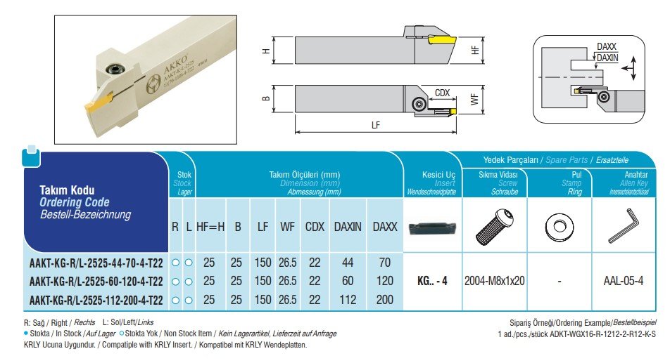 Tělo nástroje je vyrobeno z kvalitní oceli. VBD je upevněna standardním způsobem shora pomocí šroubku což zajišťuje stabilní upnutí řezné destičky. Pro nože AKKO jsou používány kované upínky a šroubky z produkce Švýcarského výrobce SFS. Tyto držáky jsou opatřeny povlakem stříbrné… Více