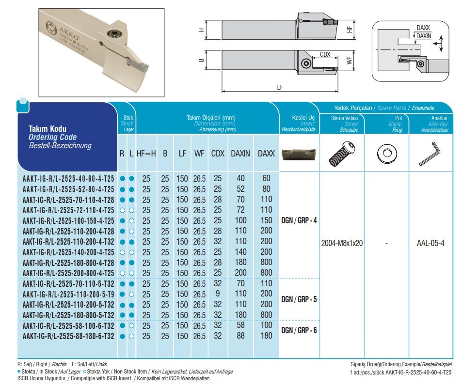 Tělo nástroje je vyrobeno z kvalitní oceli. VBD je upevněna standardním způsobem shora pomocí šroubku což zajišťuje stabilní upnutí řezné destičky. Pro nože AKKO jsou používány kované upínky a šroubky z produkce Švýcarského výrobce SFS. Tyto držáky jsou opatřeny povlakem stříbrné… Více