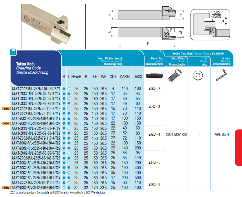 Zapichovací nůž čelní - pravý 3mm, AAKT-ZCC2-R-2525-pr. 70-110mm-3-T15