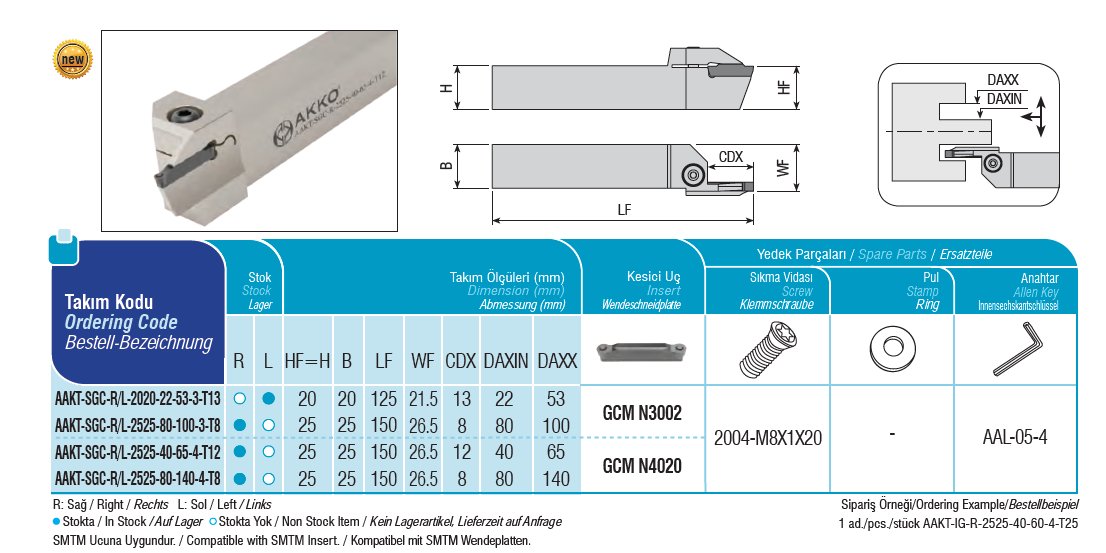Zapichovací nůž čelní - pravý 4mm, AAKT-SGC-R-2525-80-140-4-T8