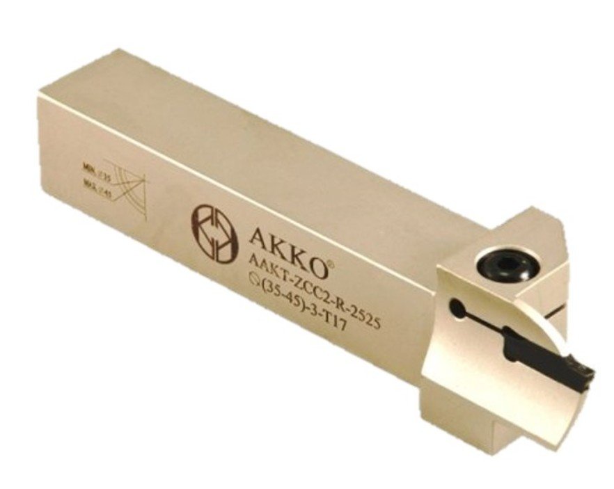 Tělo nástroje je vyrobeno z kvalitní oceli. VBD je upevněna standardním způsobem shora pomocí šroubku což zajišťuje stabilní upnutí řezné destičky. Pro nože AKKO jsou používány kované upínky a šroubky z produkce Švýcarského výrobce SFS. Tyto držáky jsou opatřeny povlakem stříbrné barvy, který zajišťuje korozivzdornost a dostatečnou odolnost proti vnějším vlivům.