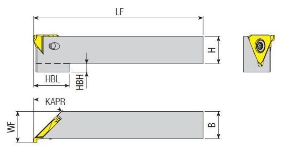 Rohový zapichovací držák VBD AKKO je kombinován s břitovými destičkami typu T20, které dodáváme jak ve standardním provedení, tak i se zakázkově vybrušovanými profily dle přání zákazníka.