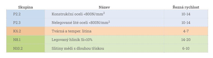 Druh obráběného materiálu Litina, Neželezné kovy, Ocel
