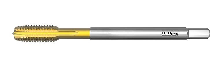 Strojní závitník pro metrický a jemný metrický závit s přímou drážkou a lamačem třísek, DIN 376, DIN 374, vhodný pro konstrukční oceli, nelegované oceli, automatové oceli, alternativně slitiny mědi tvořící krátkou třísku, tvárnou a temperovanou litinu, slitiny hliníku s Si<10%.