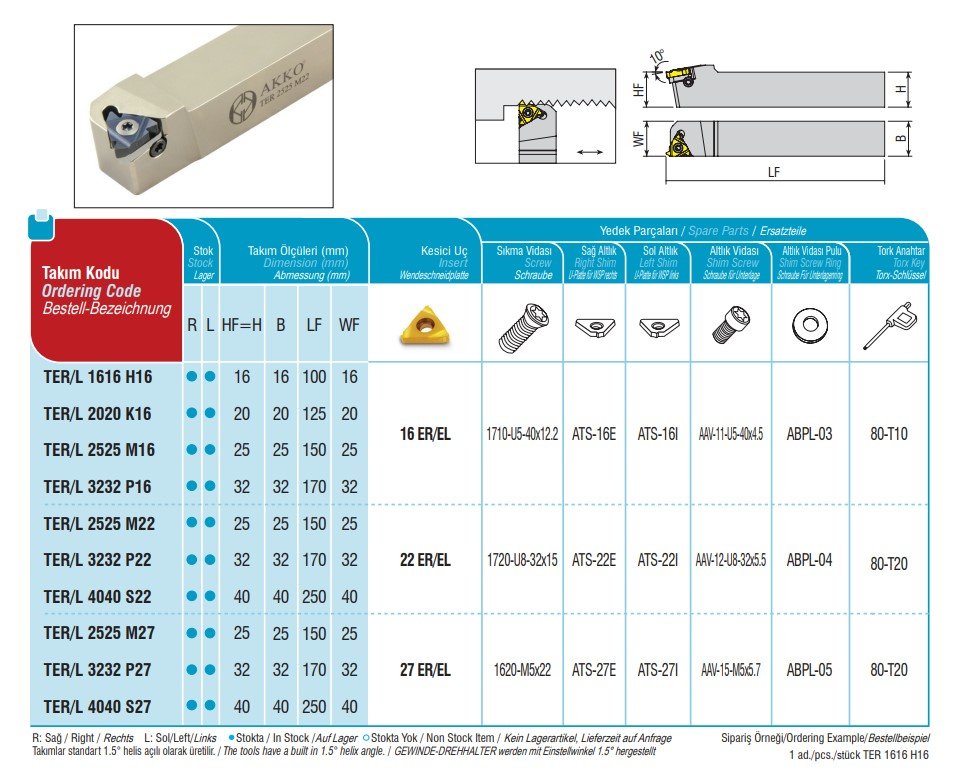 Závitovací nůž vnější TER 3232 P27