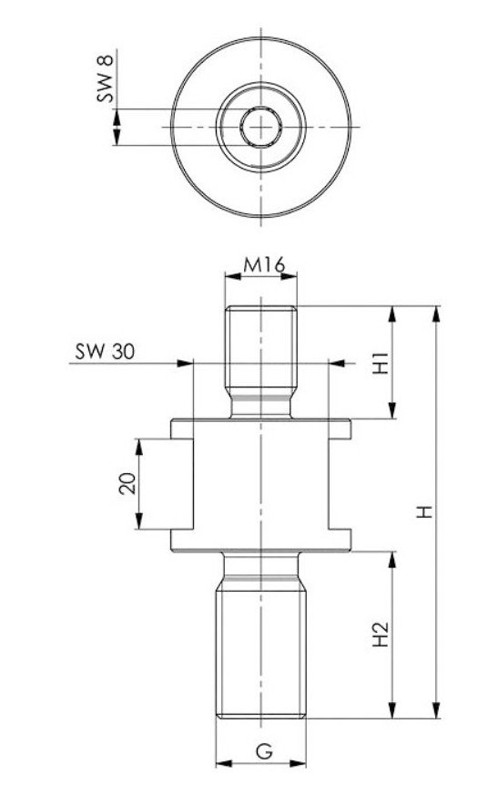 Závitový adaptér ze zušlechtěné, černěné oceli.