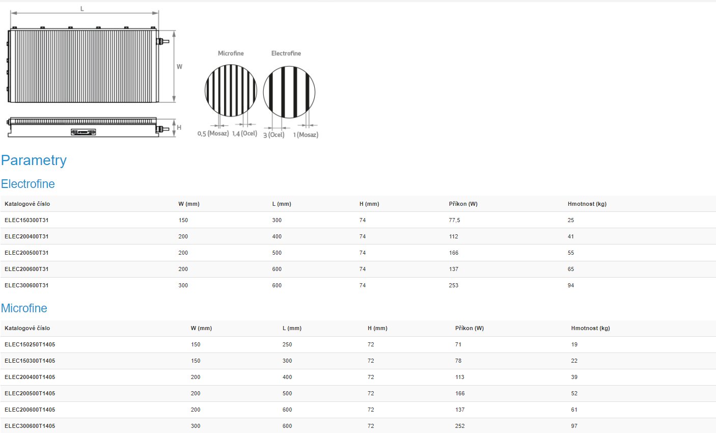 Electrofine slouží pro účinné upnutí spíše drobných obrobků během přesného povrchového broušení na plocho.