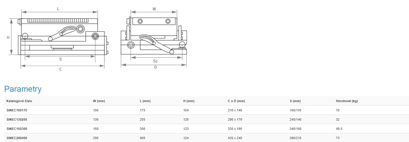 Součástí křížového sinusového stolu je magnetický upínač Neomicro, který je stabilní a má pevnou konstrukci s velkou upínací silou bez deformace obrobku až 100 N/cm2.