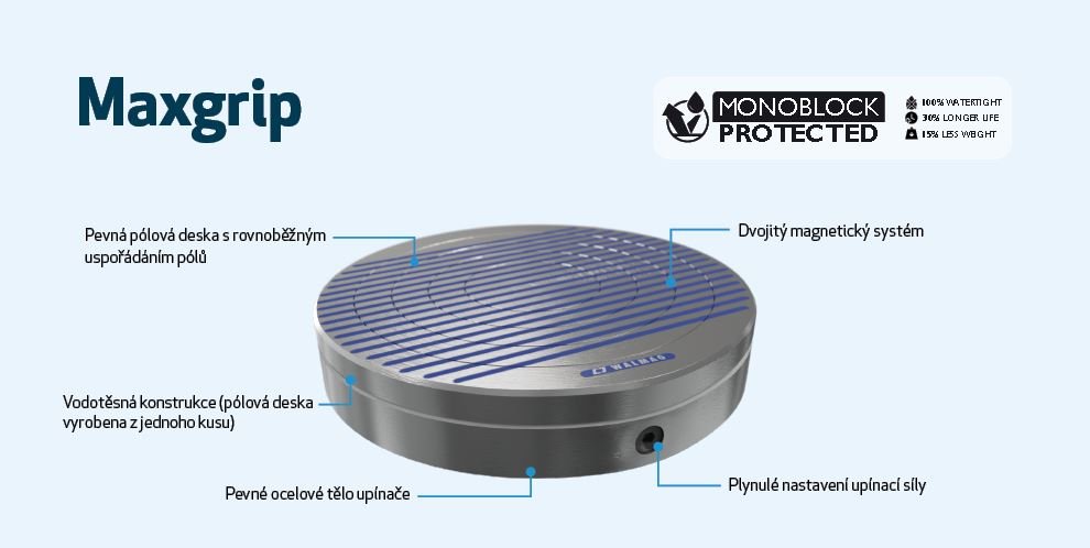 Permanentní magnetický upínač Maxgrip vyniká především svou vysokou upínací silou a univerzálností.