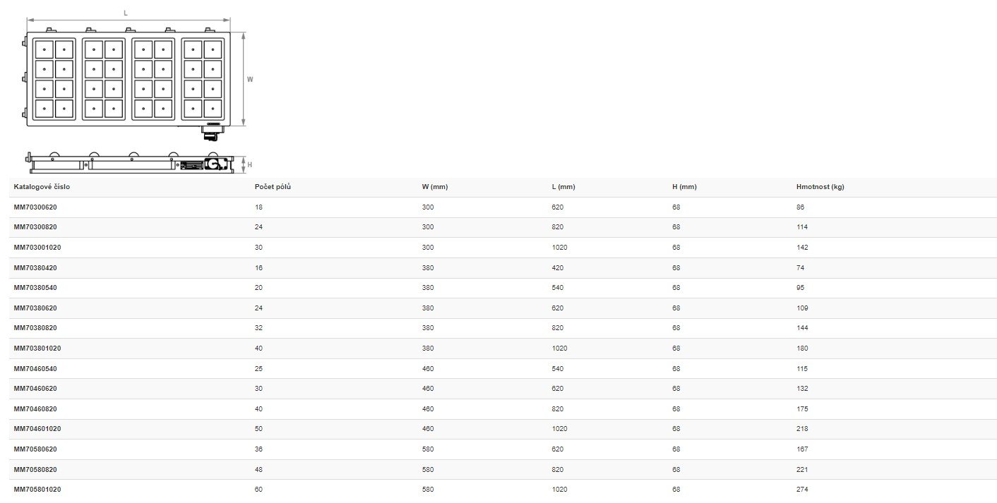 magnetický upínač na frézování MASTERMILL 70 - (580 x 1020 x 68 mm)