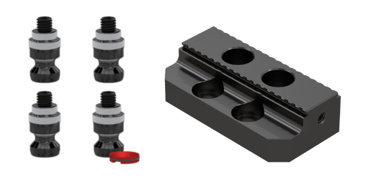 Slouží jako univerzální spojovací článek mezi základní deskou a konkrétním upínacím prvkem, což výrazně zvyšuje flexibilitu celého systému a umožňuje rychlou změnu konfigurace podle aktuální zakázky. Díky adaptérům lze snadno přecházet mezi různými typy svěráků, speciálními přípravky, paletami nebo zero‑point moduly, aniž by bylo nutné měnit základní desku nebo zasahovat do nastavení stroje.