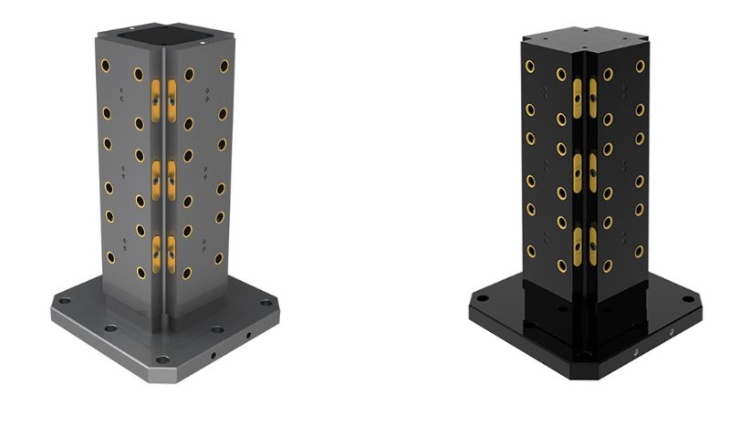 Tombstone sloupy, někdy označované jako vertikální věže, jsou určeny především pro horizontální obráběcí centra nebo pro aplikace, kde je potřeba maximalizovat upínací plochu v omezeném prostoru. Díky své výšce a vícestranné konstrukci umožňují upnutí velkého množství dílů na minimální půdorysné ploše, což výrazně zvyšuje produktivitu a efektivitu výroby. Každá strana sloupu může být osazena svěráky, přípravky nebo zero‑point moduly, takže je možné obrábět mnoho dílů v jednom cyklu nebo kombinovat různé typy obrobků podle potřeby.