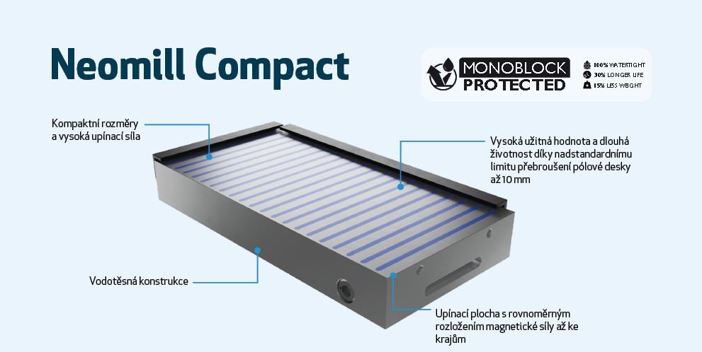 Neomill je permanentní magnetická upínací deska s unikátní voděodolnou konstrukcí.