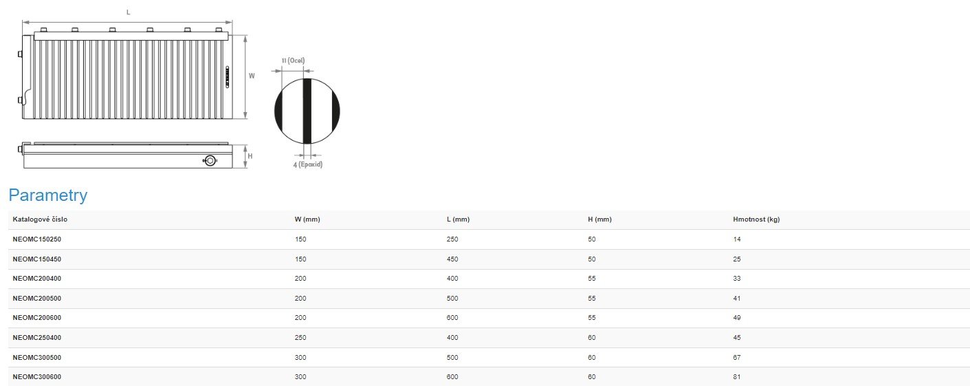 permanentní magnetický upínač pro frézování NEOMILL COMPACT - (300 x 500 x 60 mm)