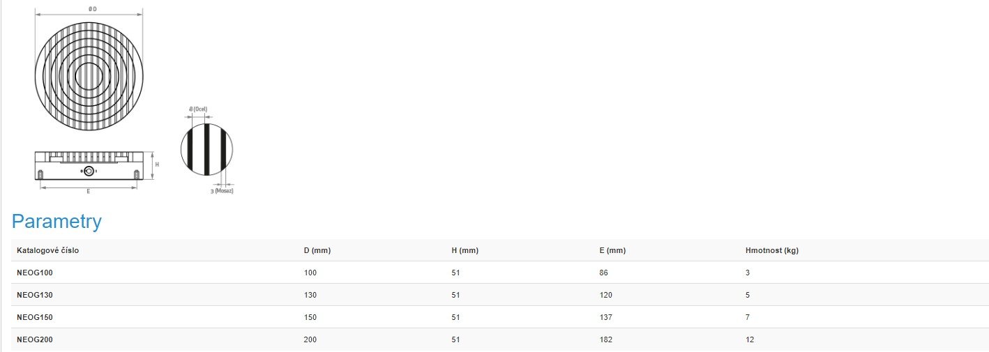Permanentní magnetický kruhový upínač Neogrip je speciálně konstruovaný především pro upínání velmi tenkých a malých součástí, jako jsou drobné ploché obrobky, profily apod.