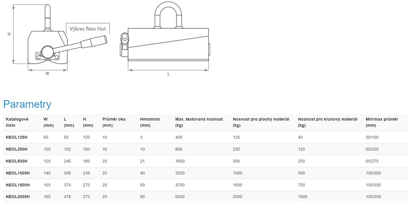 Řada Hot je speciální provedení závěsného břemenového magnetu Neo,