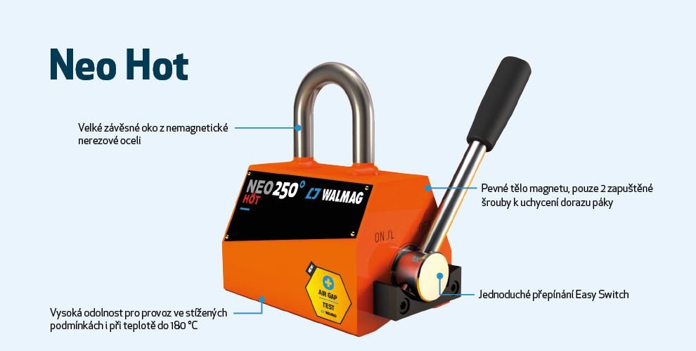 U permanentního závěsného břemenového magnetu Neo Hot je také kladen důraz na bezpečnost: