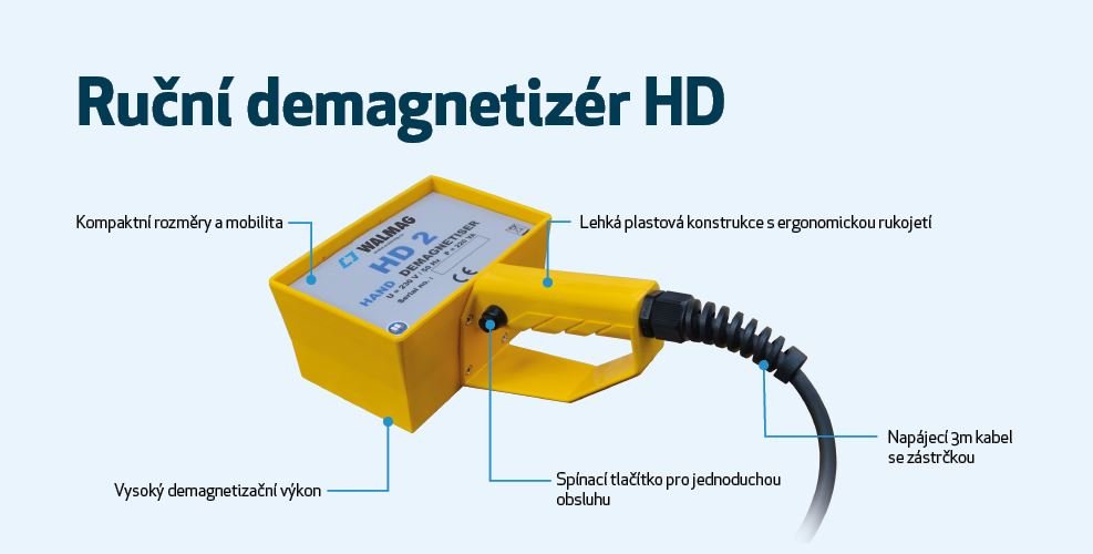 Pokud se jedná o velké součástky a obrobky, lze k demagnetizaci využít lehký ruční demagnetizér řady HD,