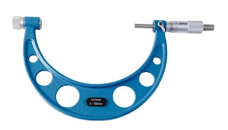 Standard analog micrometer with interchangeable measuring tips, with a scale of 0,01 mm.