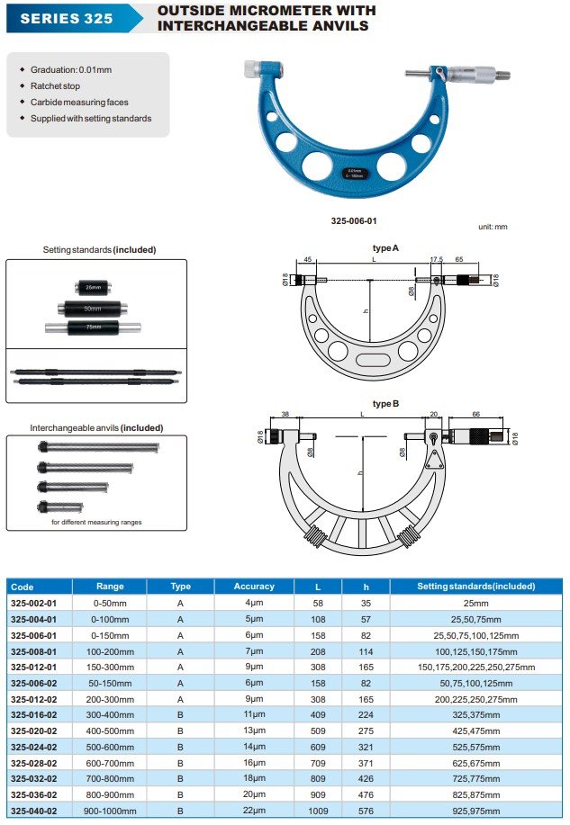 ACCUD 325-012-01 MICROMETER 150-300mm WITH INTERCHANGEABLE ANVILS (0.01mm)