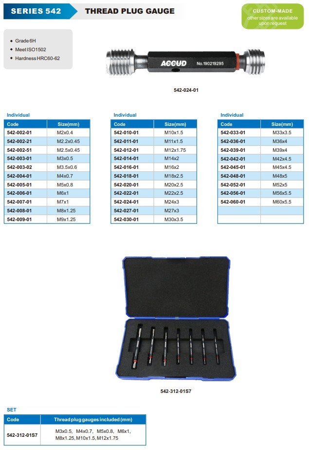 ACCUD 542-312-01S7 set of thread plug gauges included M3-M12 ( 7pcs )