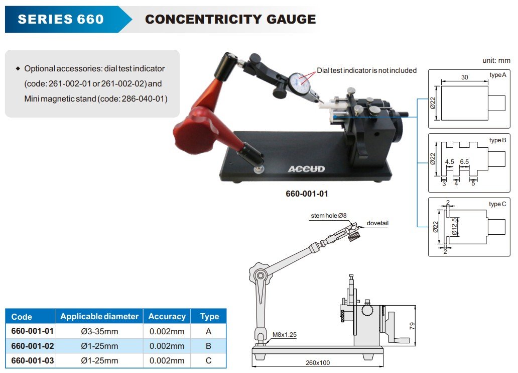 ACCUD 660-001-03 CONCENTRICITY GAUGE, type C (applicable diameter: 1-25mm)